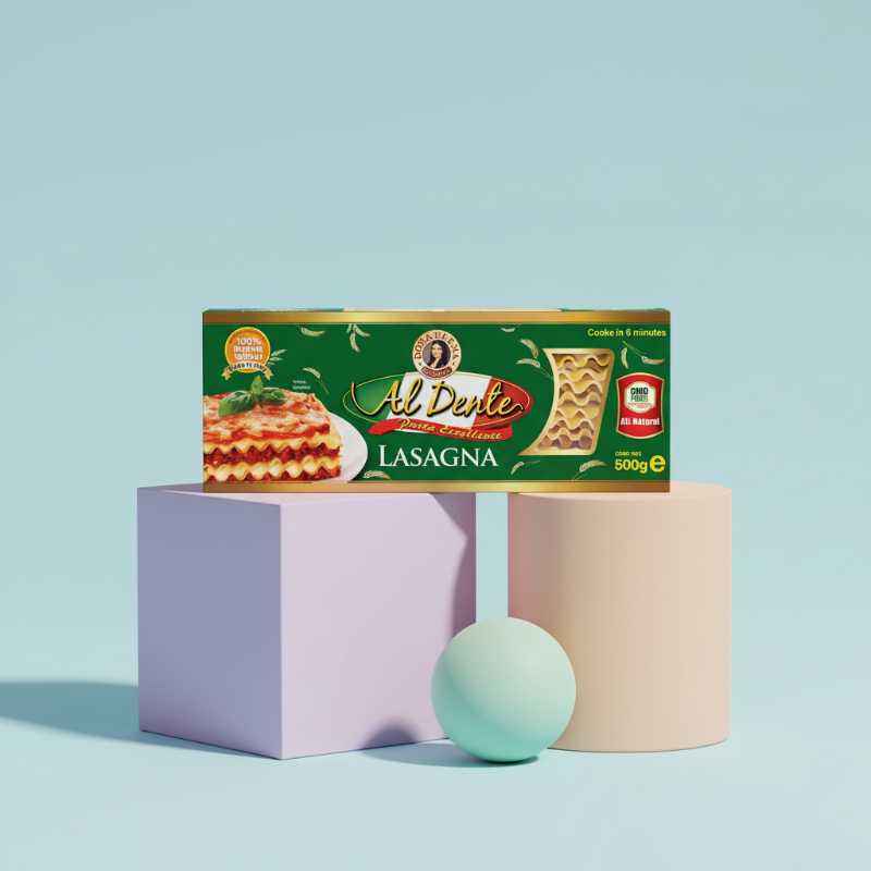 Al Dente Artisanal Lasagna Pasta – 100% Durum Wheat Noodles – 500g