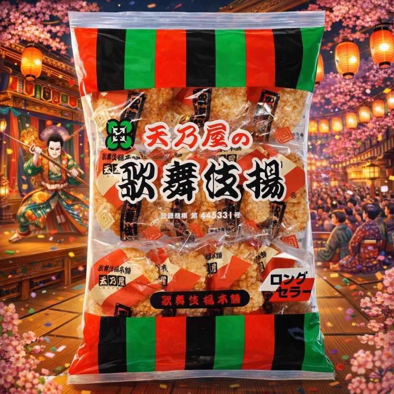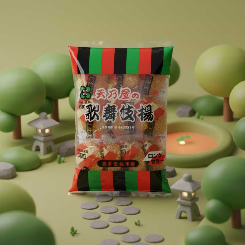 * **Authentic Japanese Snack:** Experience a classic favorite from Japan with Amanoya’s signature Kabukiage fried rice crackers. * **Savory & Sweet Flavor:** Expertly seasoned with a perfectly balanced blend of rich soy sauce and a hint of sweetness. * **Satisfyingly Crunchy:** Each bite-sized cracker is fried to a golden perfection, providing a crisp and hearty texture. * **Iconic Packaging:** Featuring the traditional red, green, and black stripes inspired by Kabuki theater curtains, making it easily recognizable. * **Versatile Treat:** A delicious and savory snack perfect for tea time, movie nights, or sharing with friends and family.