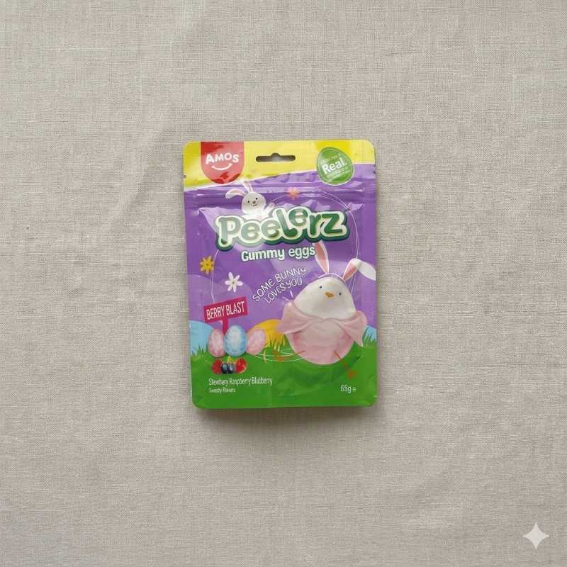 Amos Peelerz Gummy Eggs Berry Blast 65g – Fun Peelable Fruit Gummy Candy – Viral Interactive Sweets for Kids & Easter Gifts
