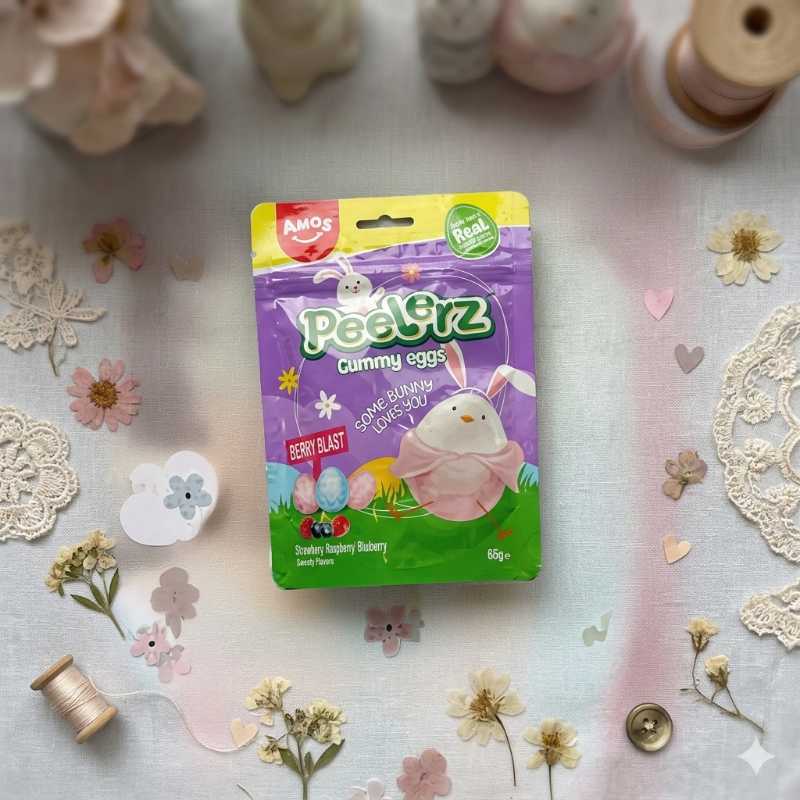 * Interactive “Peelable” Fun: Hindi lang basta gummy! Ang bawat itlog ay may “balat” na pwedeng balatan bago kainin para sa isang masayang karanasan. * 🍓 Berry Blast Flavor: Masarap at makatas na berry flavor na siguradong magugustuhan ng mga bata at kahit ng mga matatanda. * 🍎 Made with Real Fruit Juice: Naglalaman ng concentrated fruit juice kaya mas natural at malinamnam ang lasa. * 🐣 Perfect for Easter & Parties: Tamang-tama para sa Easter Egg Hunt, party loot bags, giveaways, o simpleng baon sa school. * 🌟 Viral TikTok Candy: Maging bahagi ng trend! Ang kakaibang 4D texture at peelable feature nito ay sikat na sikat online. * ✅ High Quality & Safe: Gawa ng Amos, isang trusted brand sa aspeto ng malikhain at masarap na candies.
