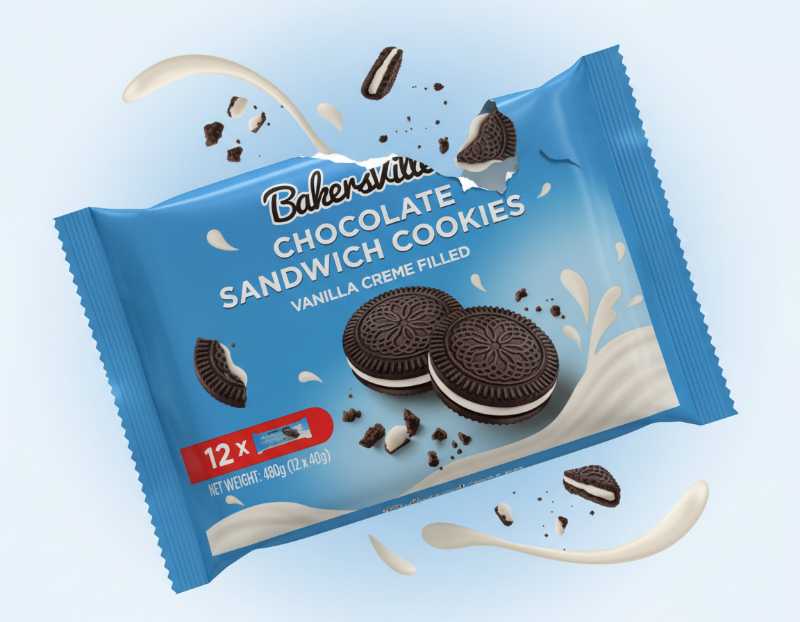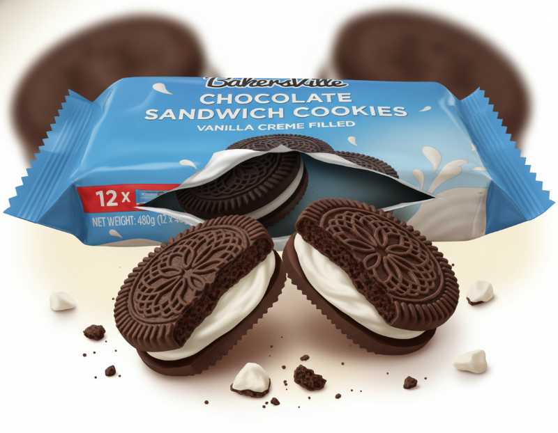 - BakersVille brand classic chocolate sandwich cookies.