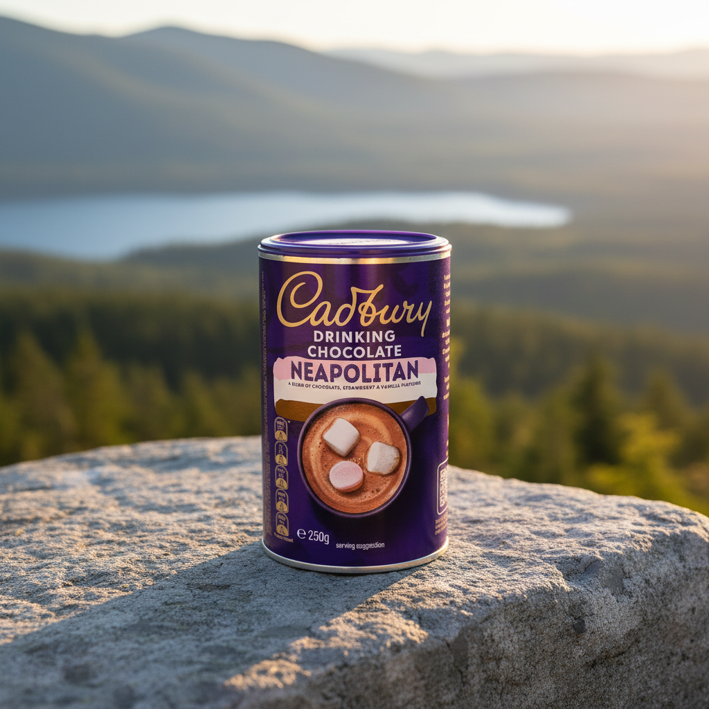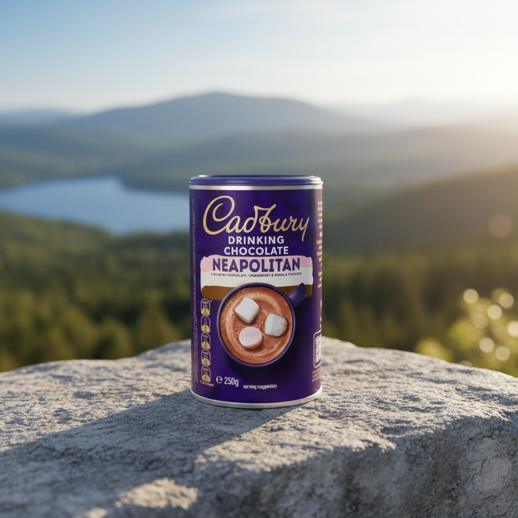 * **Unique Neapolitan Blend:** Enjoy a nostalgic mix of strawberry, creamy vanilla, and classic Cadbury chocolate flavors in one cup. * **Rich and Creamy Texture:** Formulated to dissolve easily in milk for a smooth, indulgent hot chocolate experience. * **Iconic Cadbury Quality:** Made with the signature cocoa quality you expect from the world-renowned Cadbury brand. * **Resealable Tin:** Comes in a 250g canister with a lid to keep the powder fresh and provide easy storage. * **Versatile Treat:** Perfect for cozy nights, a special afternoon treat, or as a fun addition to your dessert drinks collection.