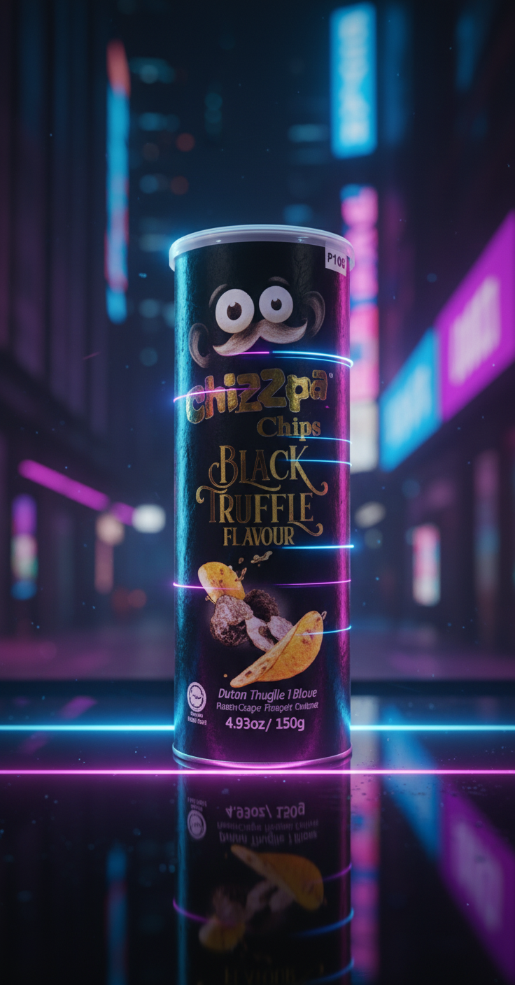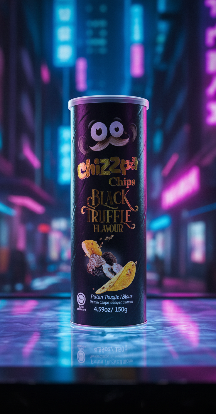 * **Gourmet Black Truffle Flavor:** Enjoy the rich, earthy, and luxurious taste of premium black truffles in every bite. * **Crispy and Crunchy:** Expertly crafted potato crisps designed to deliver a perfectly light and satisfying crunch. * **Resealable Canister:** Packaged in a sturdy 150g (4.59 oz) tube to keep the chips fresh and protected from breakage. * **Premium Quality Snacking:** A sophisticated snack choice that is perfect for elevating your snack time or sharing at parties. * **Authentic Brand:** Part of the Chizzpa series, featuring their signature fun mascot and high-quality flavor profiles.