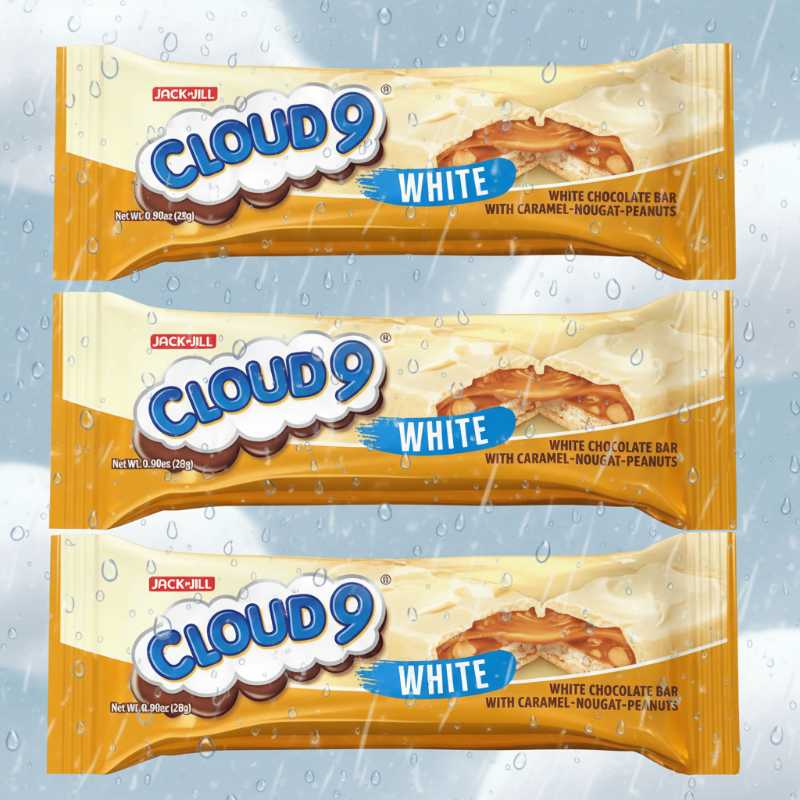 * White chocolate coated candy bar. * Features a delicious filling of nougat, rich caramel, and savory peanuts. * Offers a classic blend of sweet, salty, and satisfyingly crunchy textures. * A popular treat from the Jack ‘n Jill Cloud 9 series.
