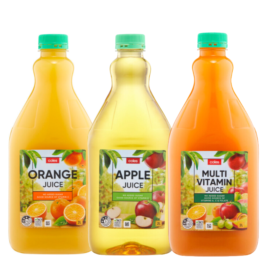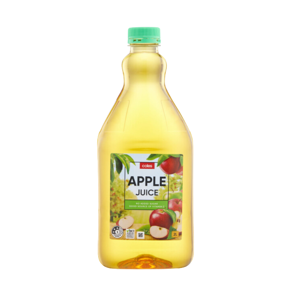 ♦ Coles 2L Apple juice. Made with no added sugar and is a good source of vitamin C