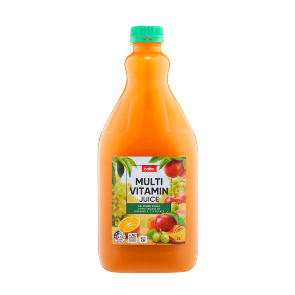 ♦ Coles 2L Multivitamin juice. Made with no added sugar and is a good source of vitamin C