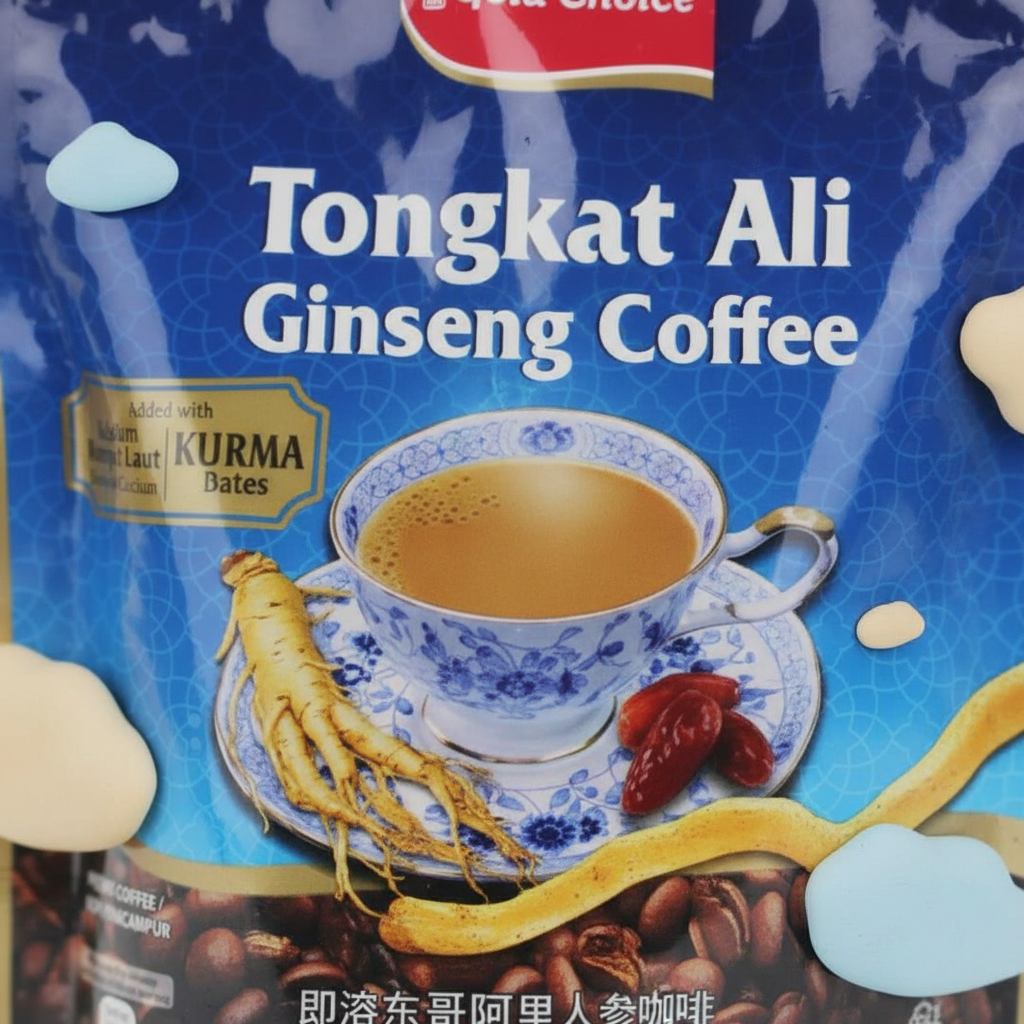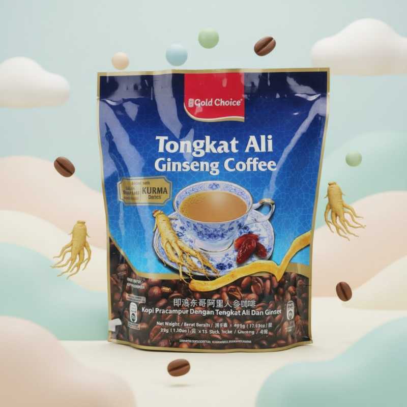 - Premium Gold Choice Tongkat Ali Ginseng Coffee blend.