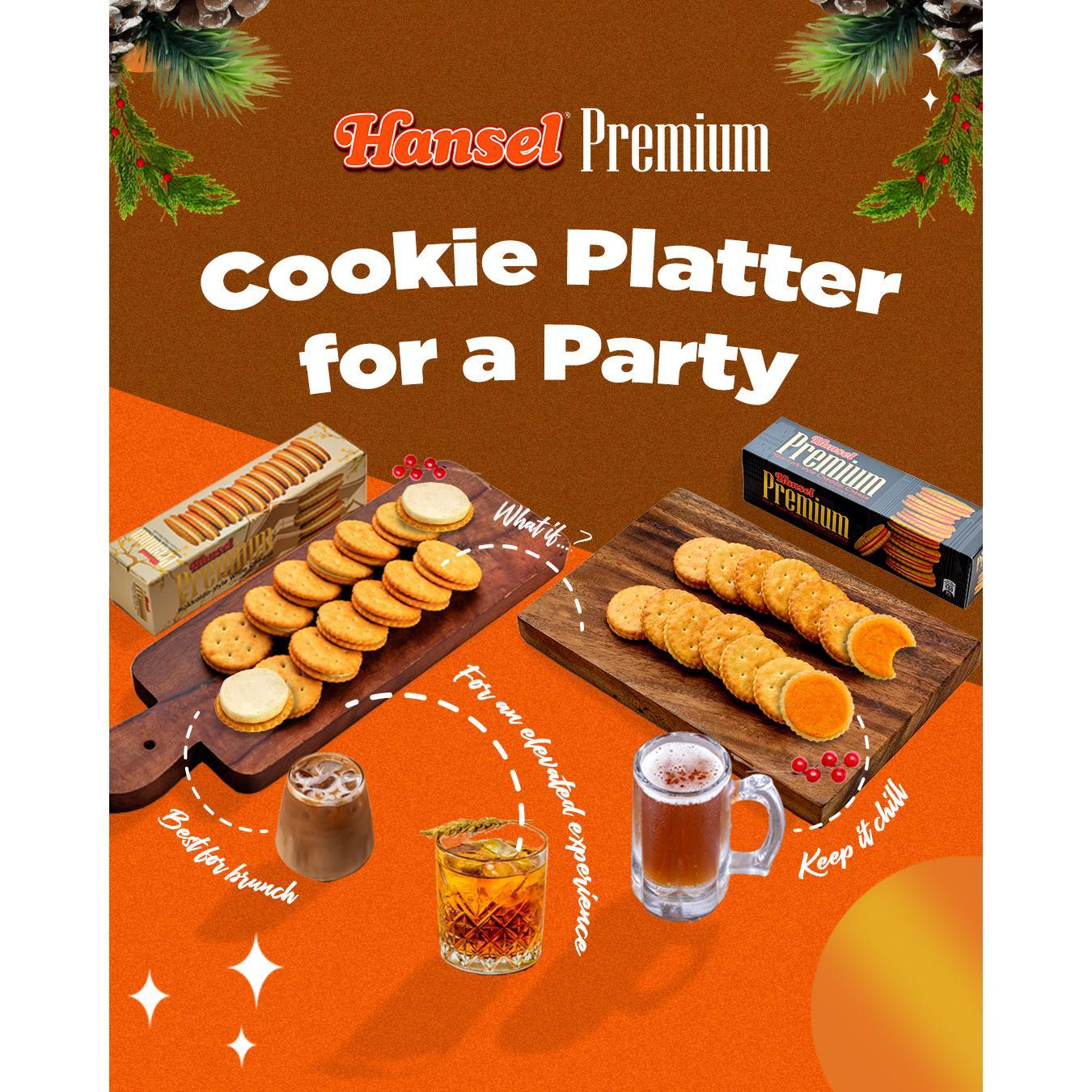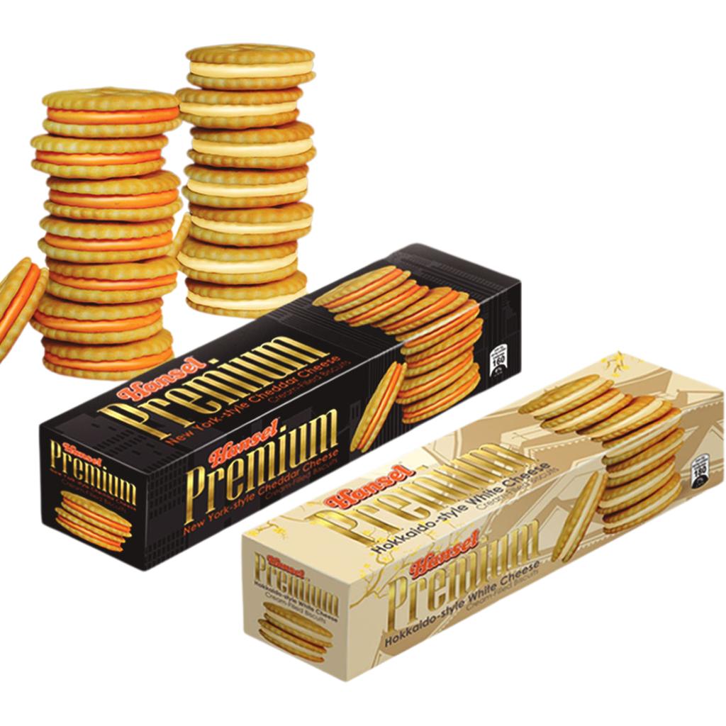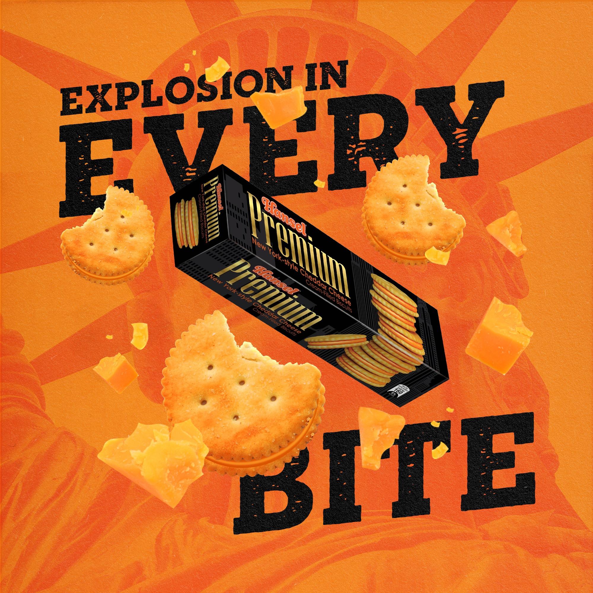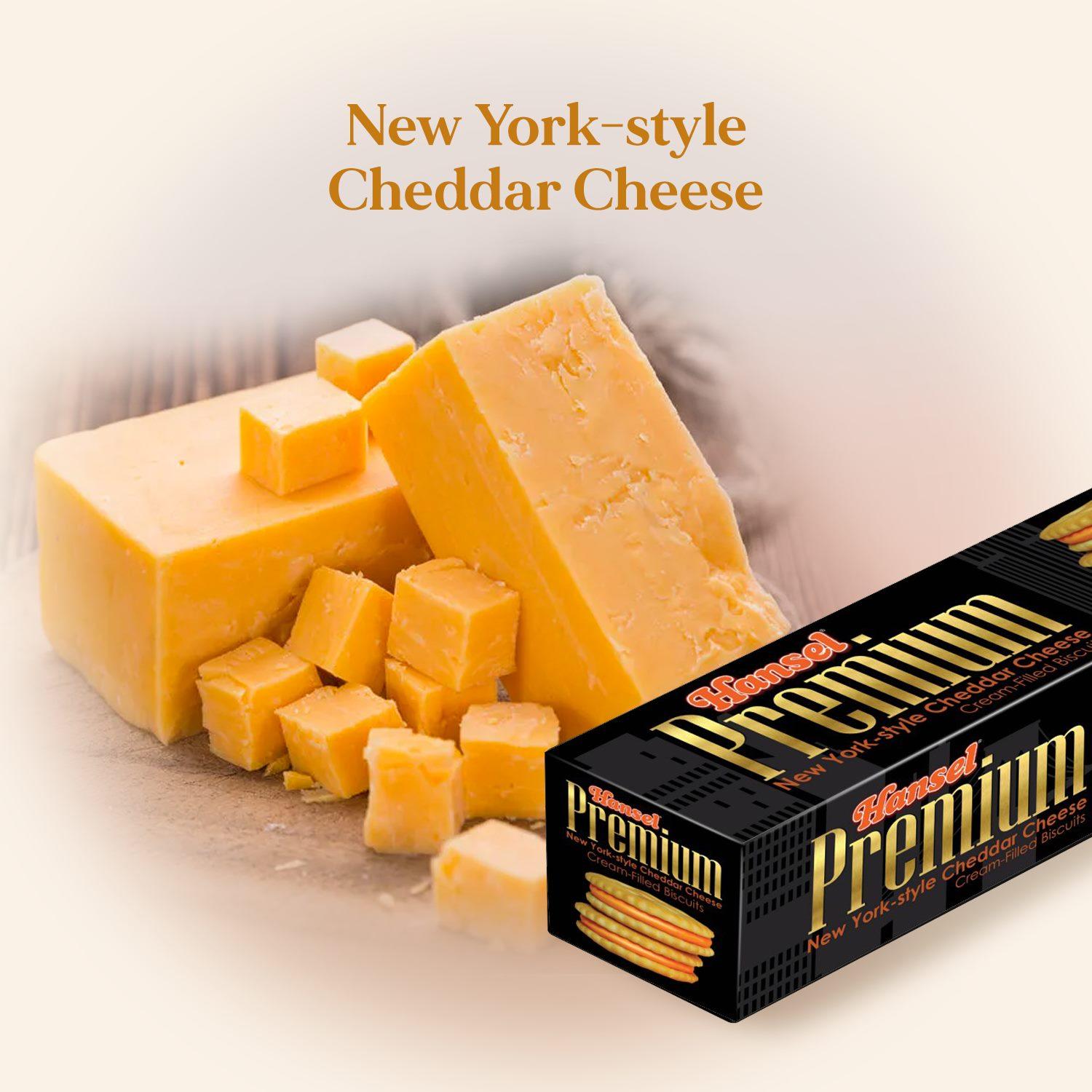 Soft-crunch Cheddar-flavored cookie sandwiches inspired by New York made for your premium taste. Enter a world of premium with a box of Hansel Premium Sandwiches