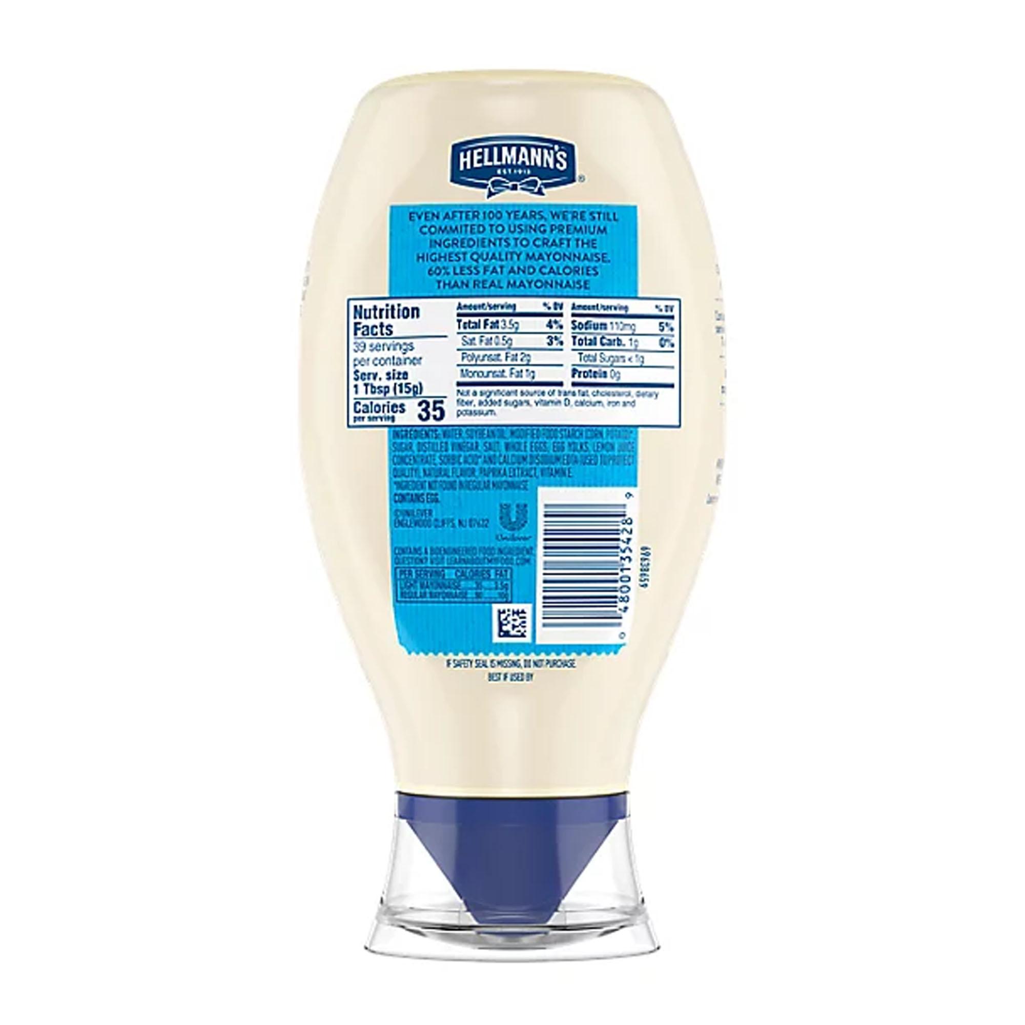 Hellmann's Light Mayonnaise is a creamy light mayonnaise that comes in a convenient mayo squeeze bottle