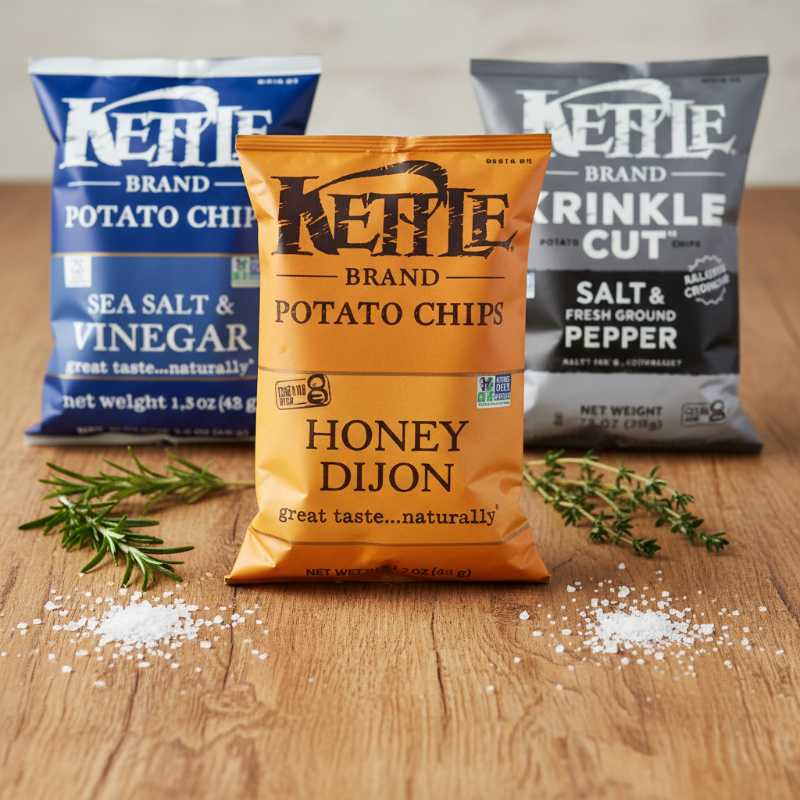 - Hertie Hand Cooked Sea Salt & Vinegar Potato Chips: Classic tangy flavor in a vibrant blue bag.