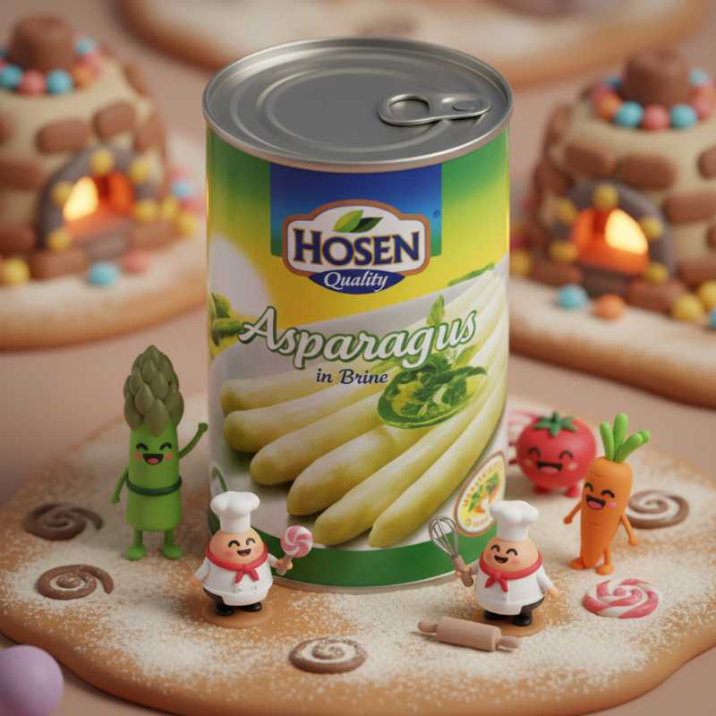 * **Brand:** Hosen Quality * **Product:** Asparagus Spears in Brine * **Type:** Canned Vegetables * **Asparagus Color:** White * **Usage:** Ideal for salads, side dishes, or as a complement to main courses * **Convenience:** Ready-to-eat, preserved for extended shelf life