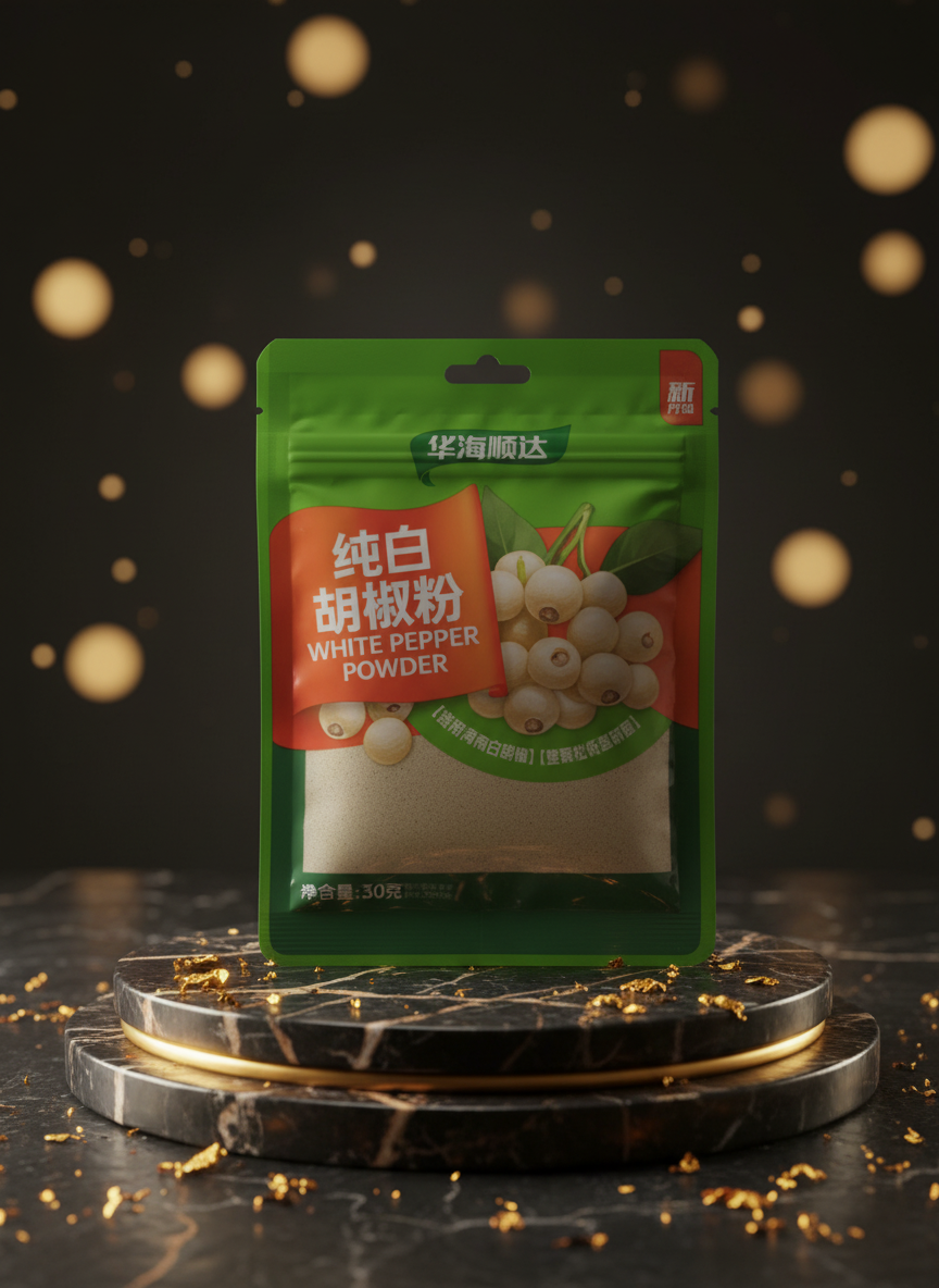 Huahai Shunda Pure White Pepper Powder – 30g Bag – Ground White Peppercorns for Seasoning and Cooking