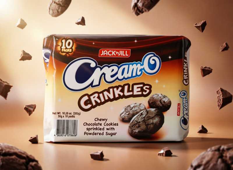 * **Brand:** Jack ‘n Jill Cream-O * **Product:** Chocolate Crinkles – fudgy chocolate cookies with powdered sugar * **Quantity:** Multipack containing 10 individual servings, perfect for portion control or sharing * **Flavor Profile:** Rich, decadent fudgy chocolate flavor balanced with a light dusting of sweet powdered sugar * **Ideal for:** School lunchboxes, quick snacks, office treats, or on-the-go enjoyment * **Convenience:** Individually wrapped packs maintain freshness and provide easy portability
