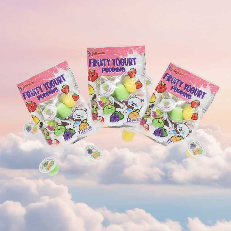 - Bag contains 12 individually sealed cups of Jelliyum Fruity Yogurt Pudding.