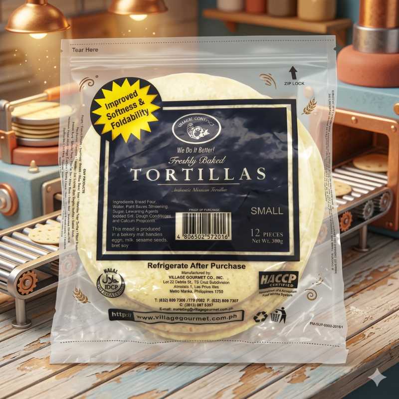 * **Freshly Baked Quality:** Enjoy the authentic taste and texture of freshly baked tortillas. * **Improved Softness & Flexibility:** Crafted for enhanced pliability, making them perfect for wrapping without tearing. * **Convenient Small Size:** Ideal for individual servings, mini tacos, or appetizers. * **12-Piece Family Pack:** Generous quantity to cater to meals and gatherings. * **Versatile Culinary Base:** Perfect for crafting tacos, quesadillas, burritos, wraps, and more. * **HACCP Certified:** Produced under stringent food safety and quality standards. * **Easy Storage:** Refrigerate after purchase to maintain optimal freshness.