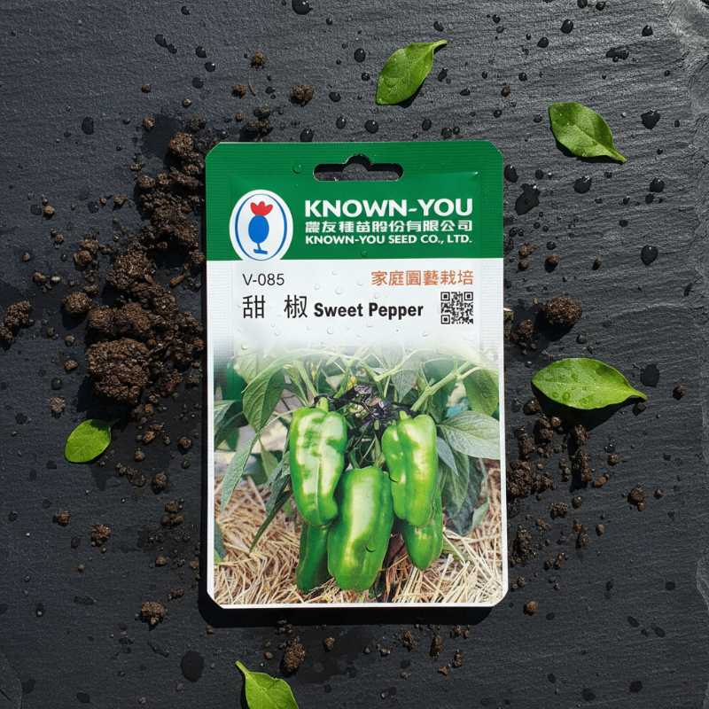 * **Brand:** KNOWN-YOU Seed Co., Ltd. * **Variety:** V-065 Sweet Pepper (Capsicum annuum). * **Product Type:** Vegetable Seeds (Bell Pepper). * **Cultivation:** Designed for Home Gardening and backyard cultivation (家庭園藝栽培). * **Yield:** Produces elongated, robust, green sweet peppers, ideal for slicing, stuffing, and fresh consumption. * **Quality:** High-quality seeds expected to offer excellent germination rates and vigorous growth.
