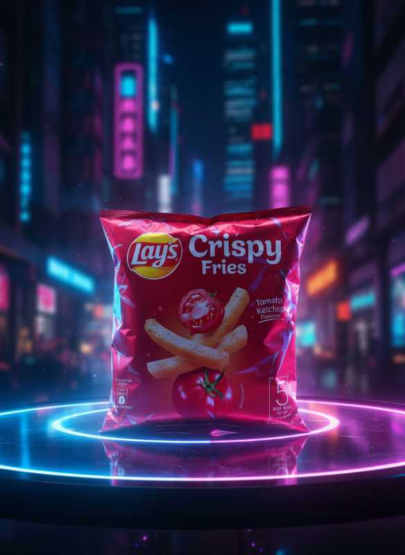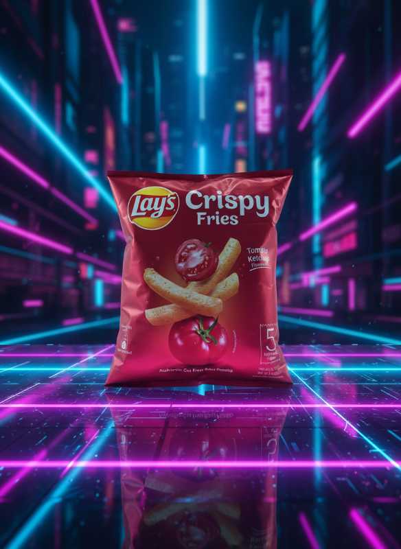 - Primary Product: Lay’s Crispy Fries, featuring a savory tomato flavor in a vibrant red bag.