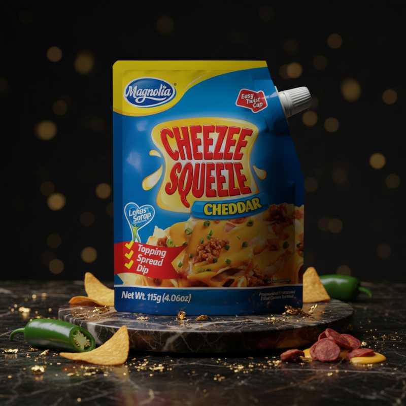 * **Creamy Cheddar Cheese Flavor:** Enjoy the rich, authentic taste of cheddar cheese in every squeeze. * **Versatile Use:** Perfect as a topping for fries, nachos, hotdogs, or as a delicious spread for sandwiches and crackers, and a convenient dip for various snacks. * **Convenient Squeeze Pouch:** Designed for easy and mess-free application, allowing you to drizzle or spread with precision. * **Net Weight:** Contains 115g (4.06oz) of savory cheese sauce. * **Trusted Brand:** From Magnolia, known for quality food products.