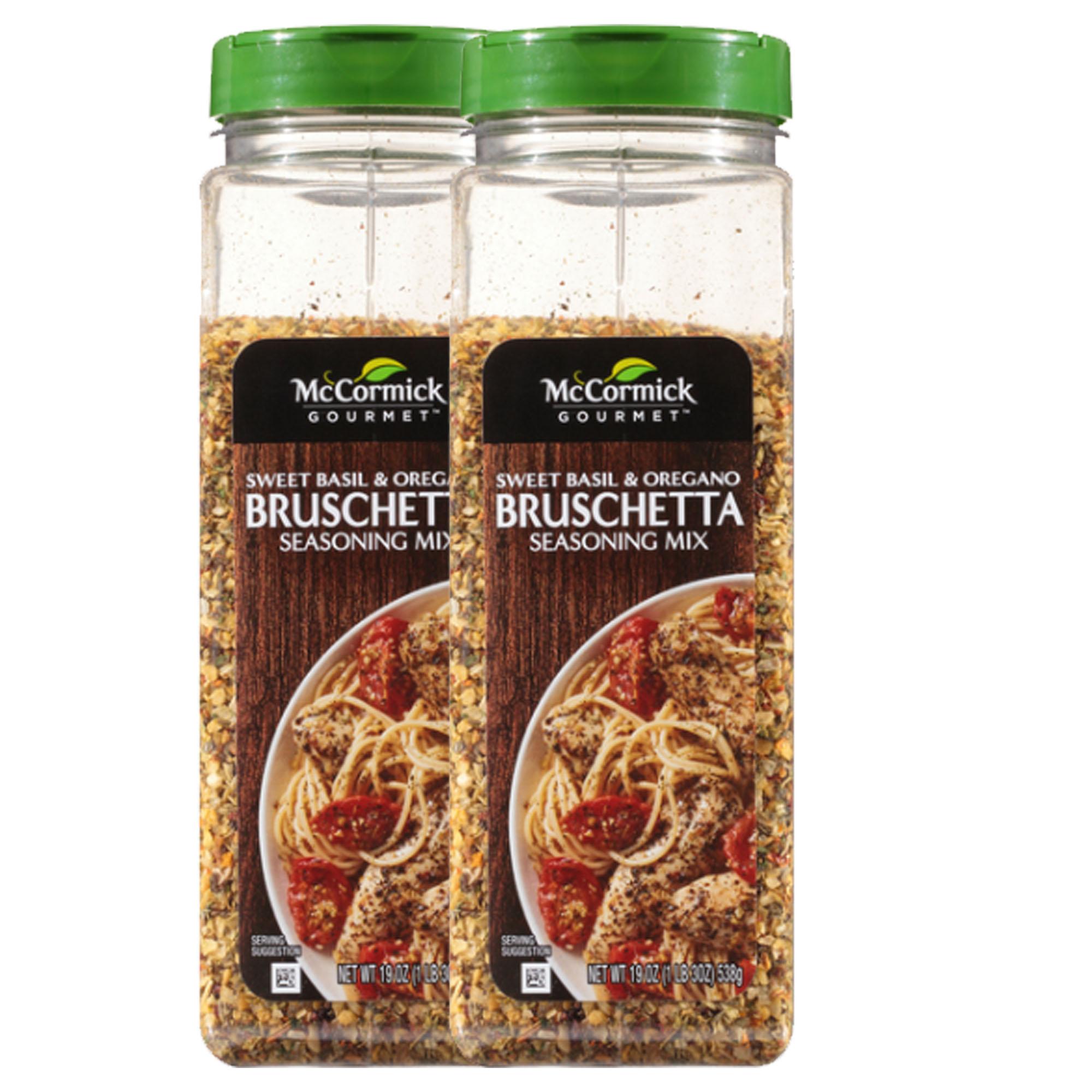 - Bruschetta seasoning blend featuring sweet basil, oregano, garlic, and other herbs