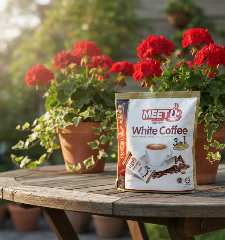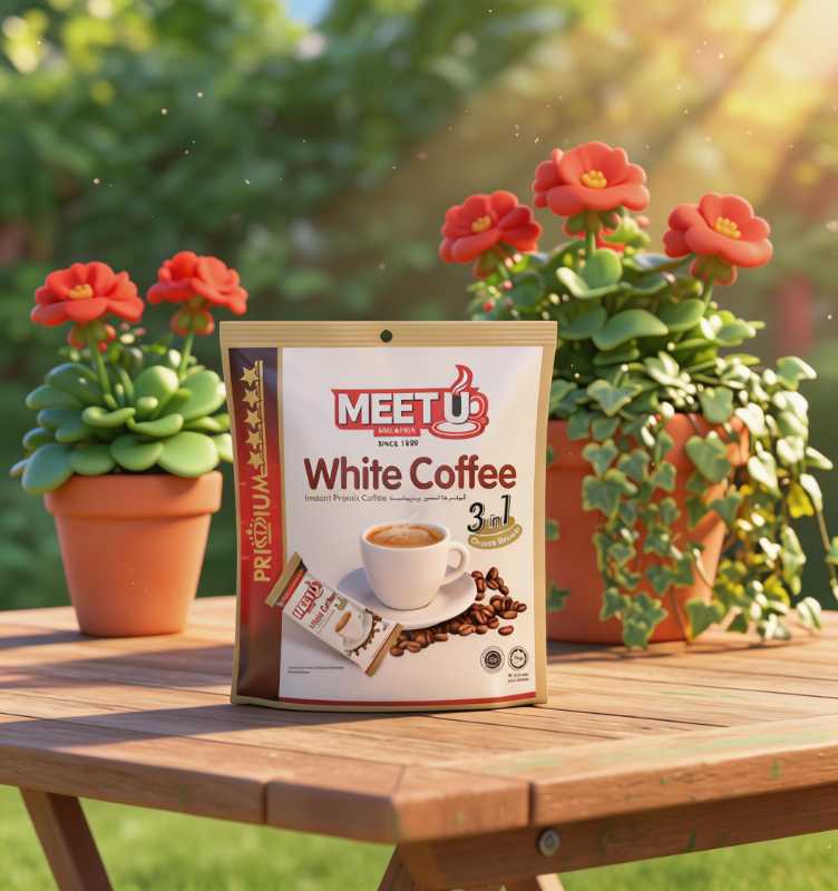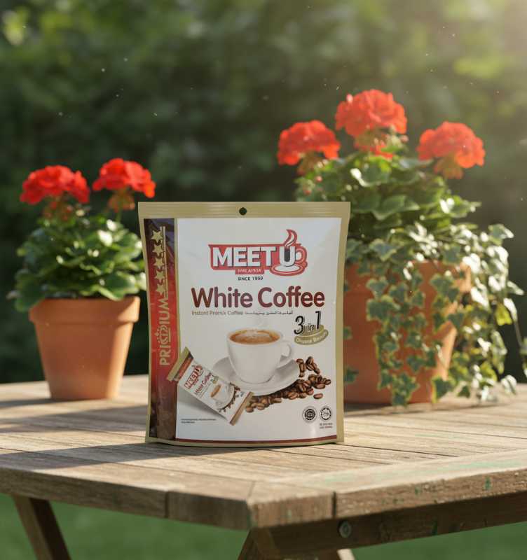 * **Rich Traditional Taste:** Enjoy the smooth and authentic flavor of premium white coffee, a tradition from the MEET U brand since 1959. * **Convenient 3-in-1 Blend:** A perfectly balanced instant mix of high-quality coffee, creamer, and sugar for a hassle-free coffee experience. * **Premium Quality Beans:** Crafted using carefully selected coffee beans to deliver a robust aroma and a satisfyingly creamy texture. * **Certified Quality:** This product is Halal-certified and produced under HACCP-compliant standards, ensuring safety and quality in every pack. * **Quick Preparation:** Simply add hot water to the pre-measured sachet for a delicious, café-style white coffee in seconds.