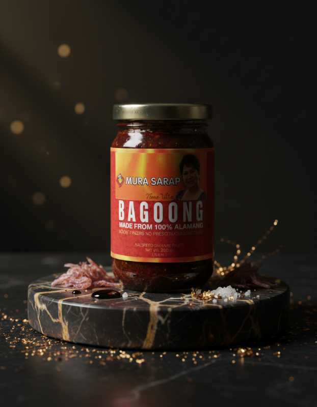 * **Authentic Filipino Bagoong:** Traditional fermented shrimp paste. * **Premium Quality:** Made from 100% Alamang (krill). * **All-Natural:** Contains no preservatives. * **Brand:** Mura Sarap. * **Versatile Condiment:** Perfect as a dipping sauce for green mangoes, or as an ingredient in various Filipino dishes like Kare-Kare or Pinakbet.