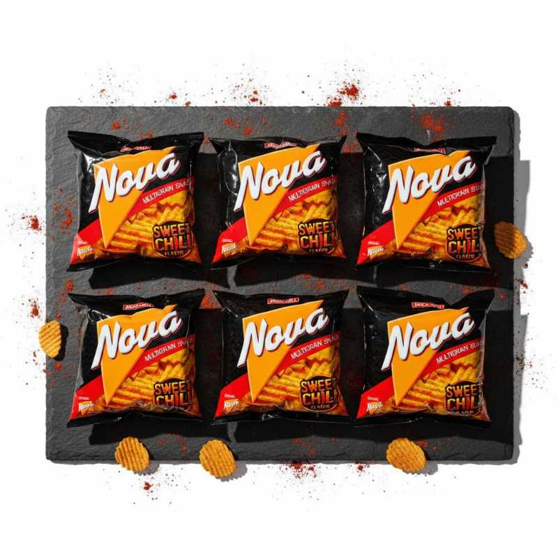 * Brand: Nova * Product Type: Multigrain Snacks * Flavor: Sweet Chili * Features a crunchy, ridged chip texture * Convenient snack bag for on-the-go enjoyment * Bold black and orange packaging design