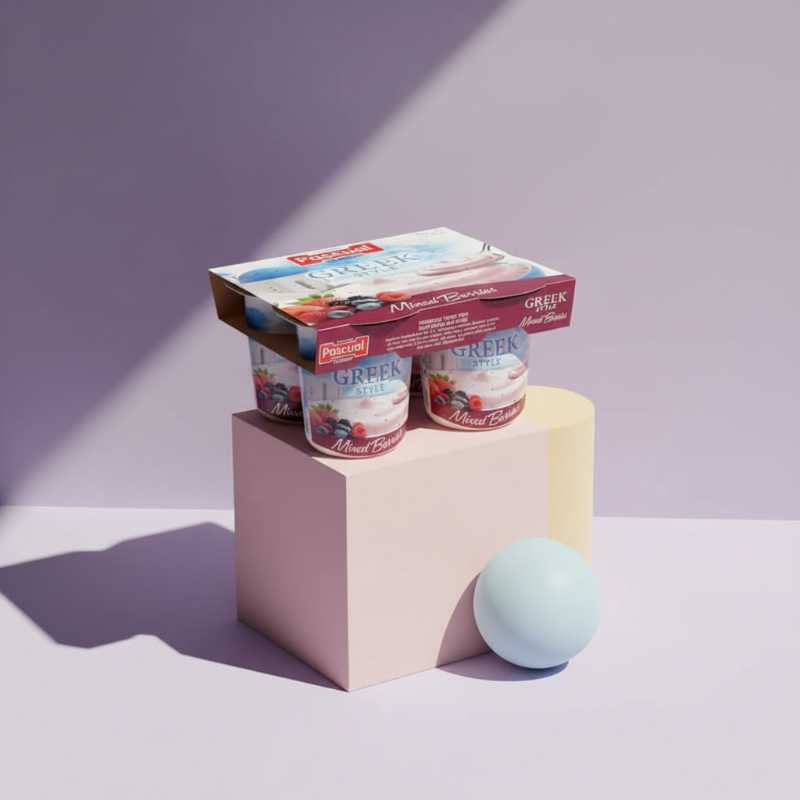 * **Creamy Texture:** Enjoy the rich and smooth consistency of authentic Greek-style yogurt. * **Delicious Mixed Berries:** Infused with a flavorful blend of strawberries, blueberries, and raspberries for a natural fruity taste. * **Convenient Multipack:** Comes in a pack of four individual 125g cups, ideal for meal prepping, school lunches, or quick snacks. * **Quality Ingredients:** Produced by Pascual, ensuring high standards of quality and freshness in every cup. * **Nutritious Snack:** A tasty way to include dairy and fruit flavors into your daily diet.