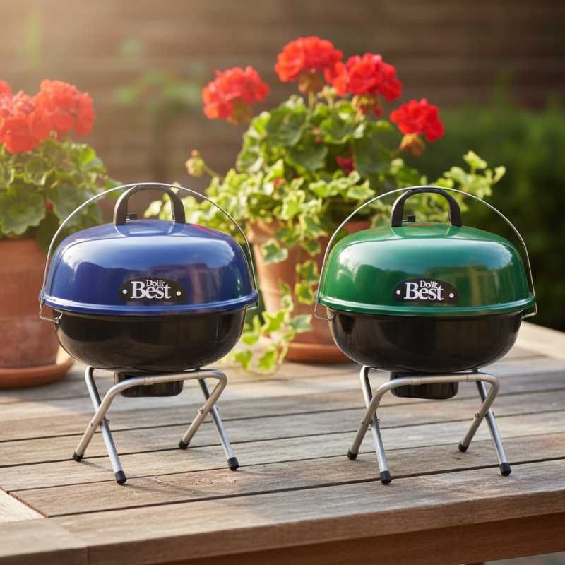 * **Ultimate Portability:** Lightweight and compact design with foldable legs makes these grills perfect for camping, tailgating, beach trips, and picnics. * **Durable Enamel Coating:** The high-quality blue and green enamel-coated lids and black bowls provide excellent heat retention and are easy to clean. * **Secure Transport:** Features a heat-resistant handle and a convenient lid-locking bar that holds everything in place while you’re on the move. * **Stable Tabletop Design:** Sturdy silver-finished wire legs provide a stable base on any flat surface and fold up compactly for easy storage. * **Classic Charcoal Flavor:** The iconic kettle shape circulates heat evenly, delivering that authentic smoky barbecue taste in a convenient small size. * **Great Value Set:** Includes two stylish, vibrantly colored mini grills, ideal for small gatherings or separate cooking of different food types.