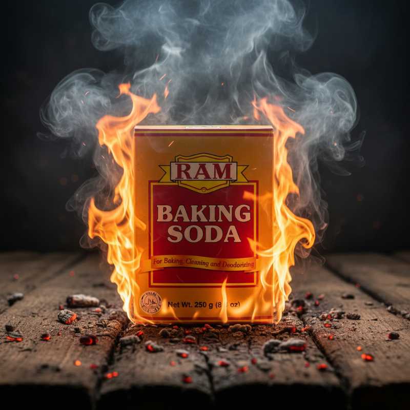 * **Brand:** RAM * **Product:** Premium Baking Soda * **Quantity:** 250g (8.8 oz) * **Multi-Purpose Use:** Perfect for all your baking needs, household cleaning, and neutralizing odors. * **Certification:** Halal certified product. * **Quality Packaging:** Sturdy box design for easy storage and use.
