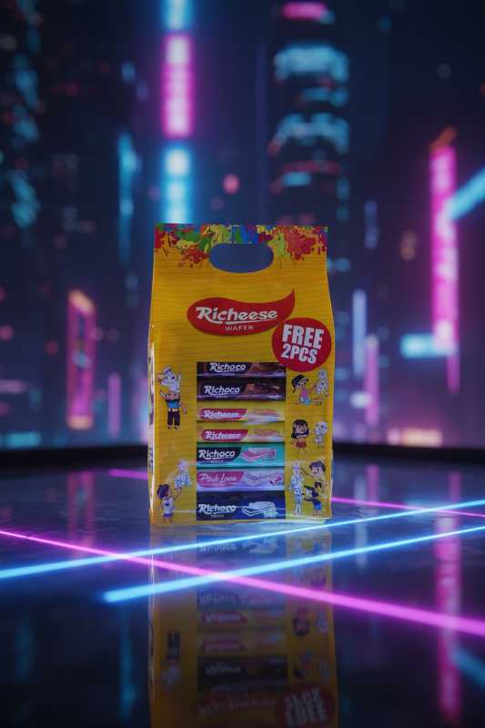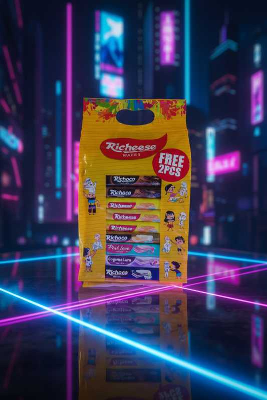 * **Richeese Wafers Variety Pack:** Enjoy a delightful assortment of Richeese’s popular wafer bars. * **Multipack Convenience:** Perfect for sharing, lunchboxes, or on-the-go snacking with individually wrapped treats. * **Assorted Flavors:** Features popular flavors such as Richoco (chocolate) and Pink Lava, offering a diverse taste experience. * **Special Offer Included:** Each pack comes with a “FREE 2 PCS” promotion for extra enjoyment. * **Crispy & Creamy Texture:** Experience the signature crispy wafer layers combined with rich, creamy fillings.