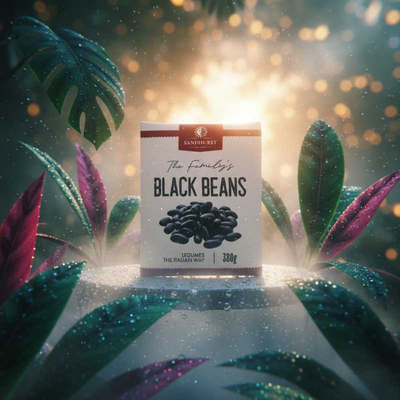* Premium quality Black Beans from Sandhurst (Est. 1948). * Labeled as “The Family’s Black Beans” for trusted home cooking. * Net weight of 380g, ideal for side dishes or incorporating into main meals. * High-quality legumes prepared with an Italian influence (“Legumes The Italian Way”). * Versatile ingredient for chili, tacos, salads, and Tex-Mex or Mediterranean recipes.