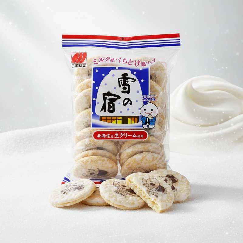 * **Authentic Japanese Delight:** Savor the popular Yuki no Yado ‘Snow Hut’ rice crackers. * **Irresistible Milk Flavor:** A unique blend of sweet and savory with a delicate milky coating. * **Premium Hokkaido Fresh Cream:** Crafted with high-quality fresh cream from Hokkaido, Japan, for an exquisite taste. * **Crispy Senbei Texture:** Enjoy the light and airy crunch of traditional Japanese rice crackers. * **Convenient Multi-Pack:** Perfect for sharing, adding to lunchboxes, or enjoying as a delightful snack anytime.