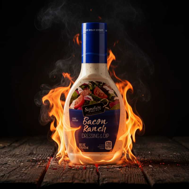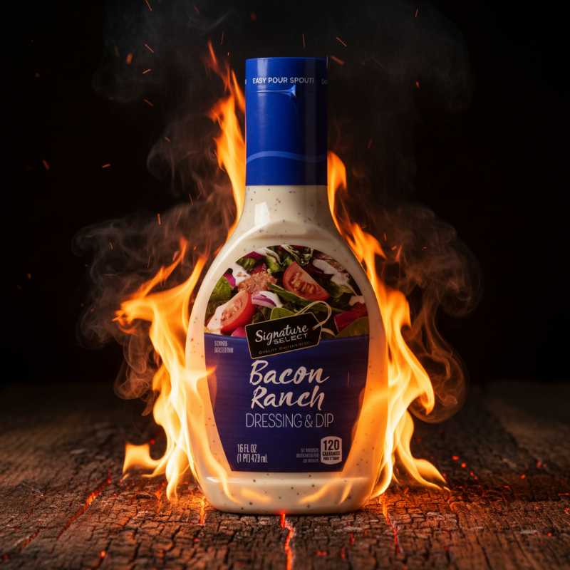 * **Brand:** Signature Select * **Flavor:** Bacon Ranch * **Product Type:** Dressing & Dip * **Size:** 16 fl oz (473 mL) * **Calories:** 120 per serving * **Versatile Use:** Perfect for salads, dipping vegetables, or as a condiment.