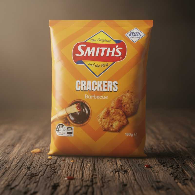 * **Brand:** Smith’s * **Product:** Crackers * **Flavor:** Delicious Barbecue (BBQ) * **Preparation:** Oven Baked for a crisp texture * **Special Feature:** ‘The Original’ recipe * **Weight:** 150g pack * Ideal for snacking, parties, or dipping