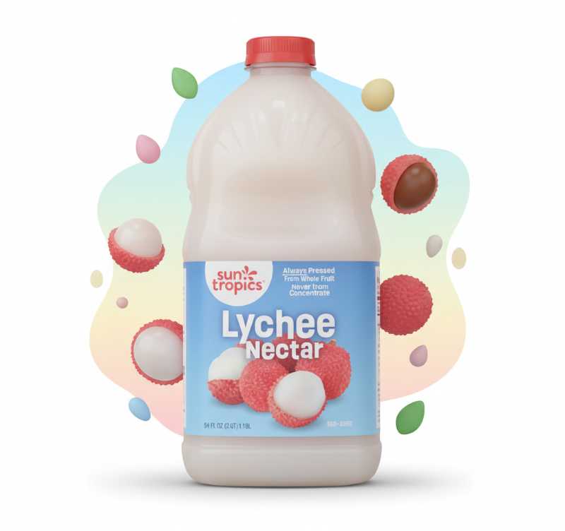 * **Exotic Lychee Flavor:** Enjoy the sweet, highly fragrant, and delicate taste of authentic lychee fruit. * **Refreshing Tropical Nectar:** A delicious and satisfying beverage, perfect for quenching thirst on a hot day. * **Versatile Use:** Ideal served chilled straight from the bottle or used as a mixer for tropical punches, smoothies, and cocktails. * **Quality Beverage:** Produced by Sun Tropics, specializing in authentic and unique fruit drinks.