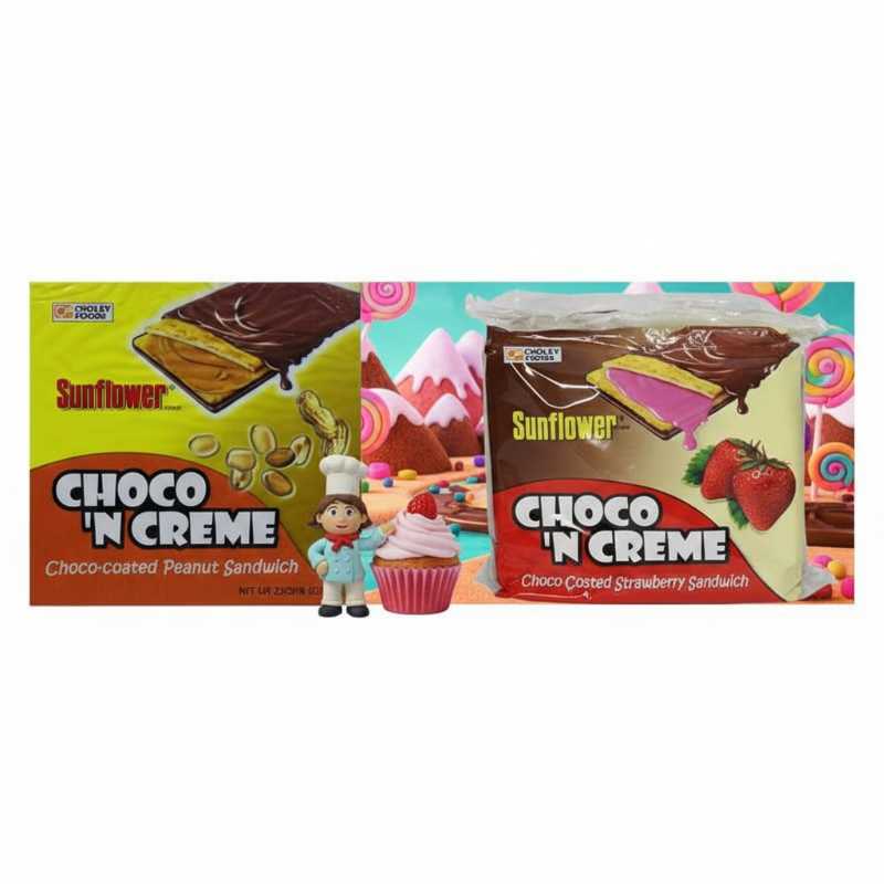 - Features two delicious flavors: Choco-Sweet Peanut Barrette and Choco-Sweet Strawberry Creme.
