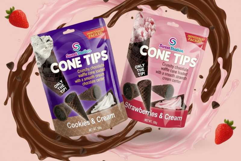 – Unique ‘ONLY THE TIPS!’ Concept: Savor the best part of an ice cream cone with these delightful, ready-to-eat snack tips.