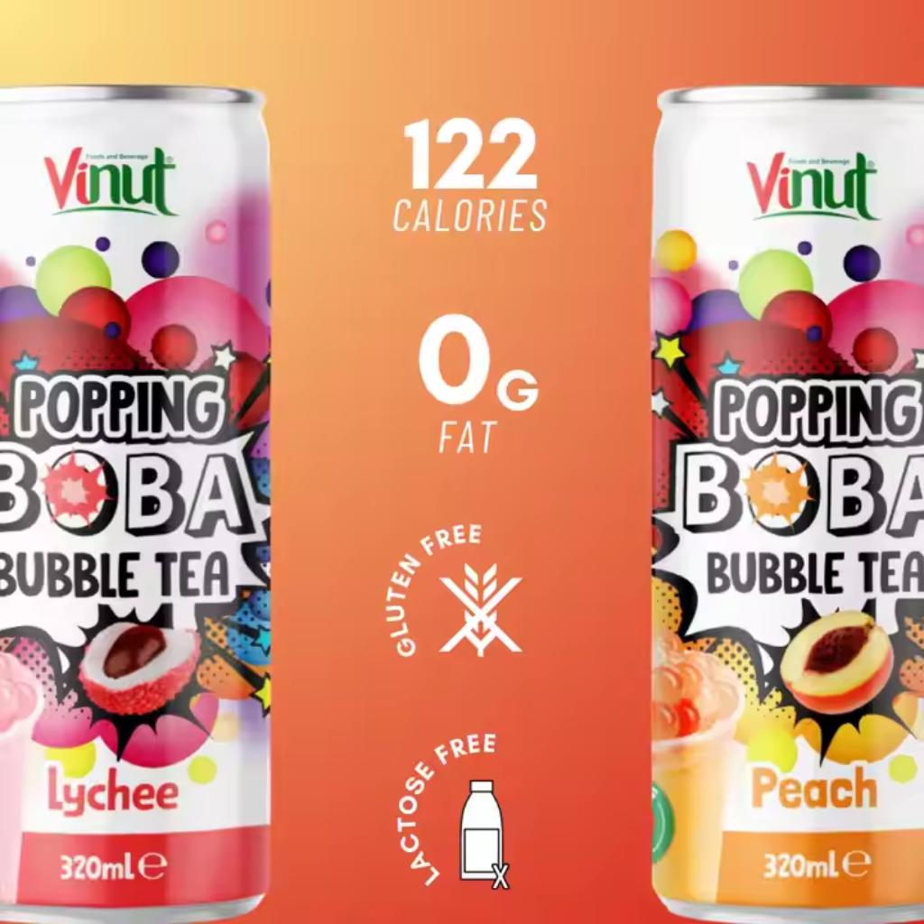 - Vinut Popping Boba Bubble Tea is perfect for bubble tea fans and anyone looking for a fun new drink. Each sip is filled with juicy boba that pops in your mouth, adding a sweet andzesty burst of flavor that will keep you coming back for more. Made with high-quality tea and natural ingredients, this drink is a tasty treat you can enjoy any time.