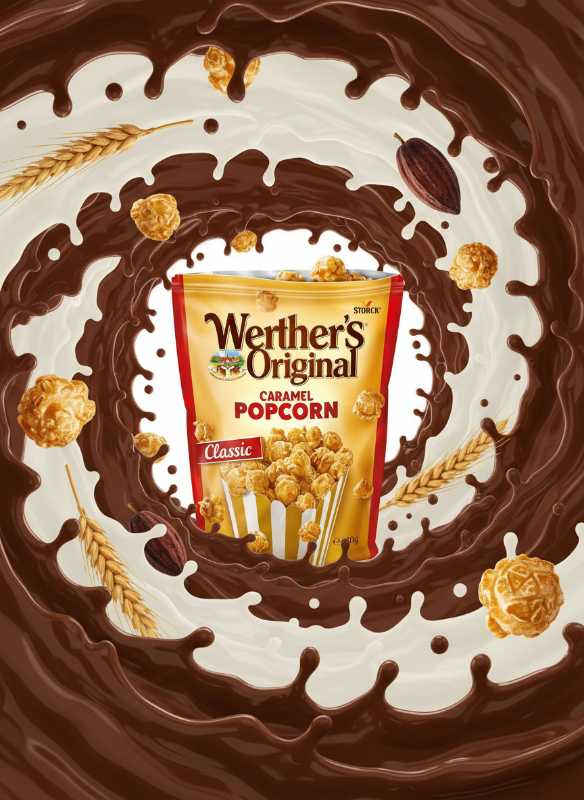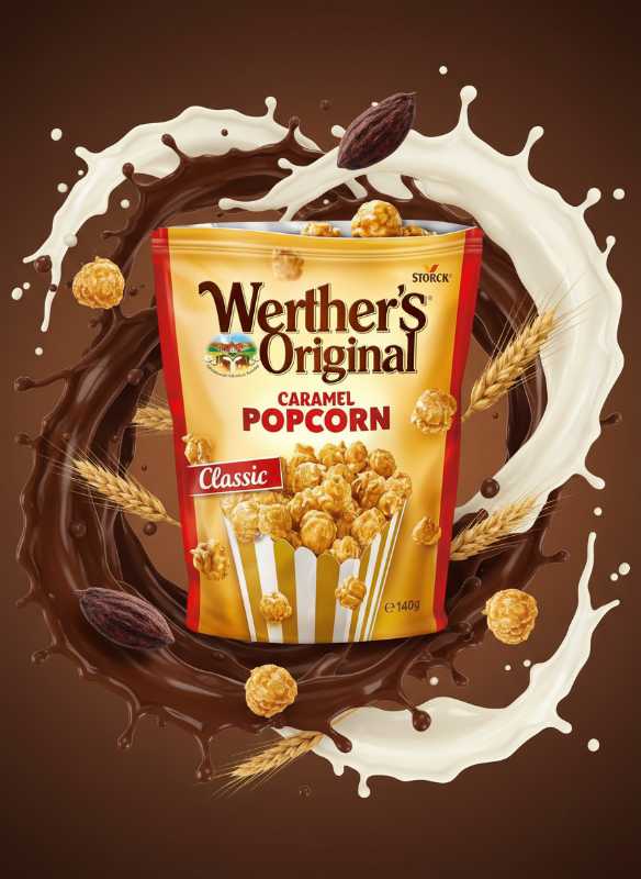 - Authentic Werther’s Original taste combined with crispy, fluffy popcorn.