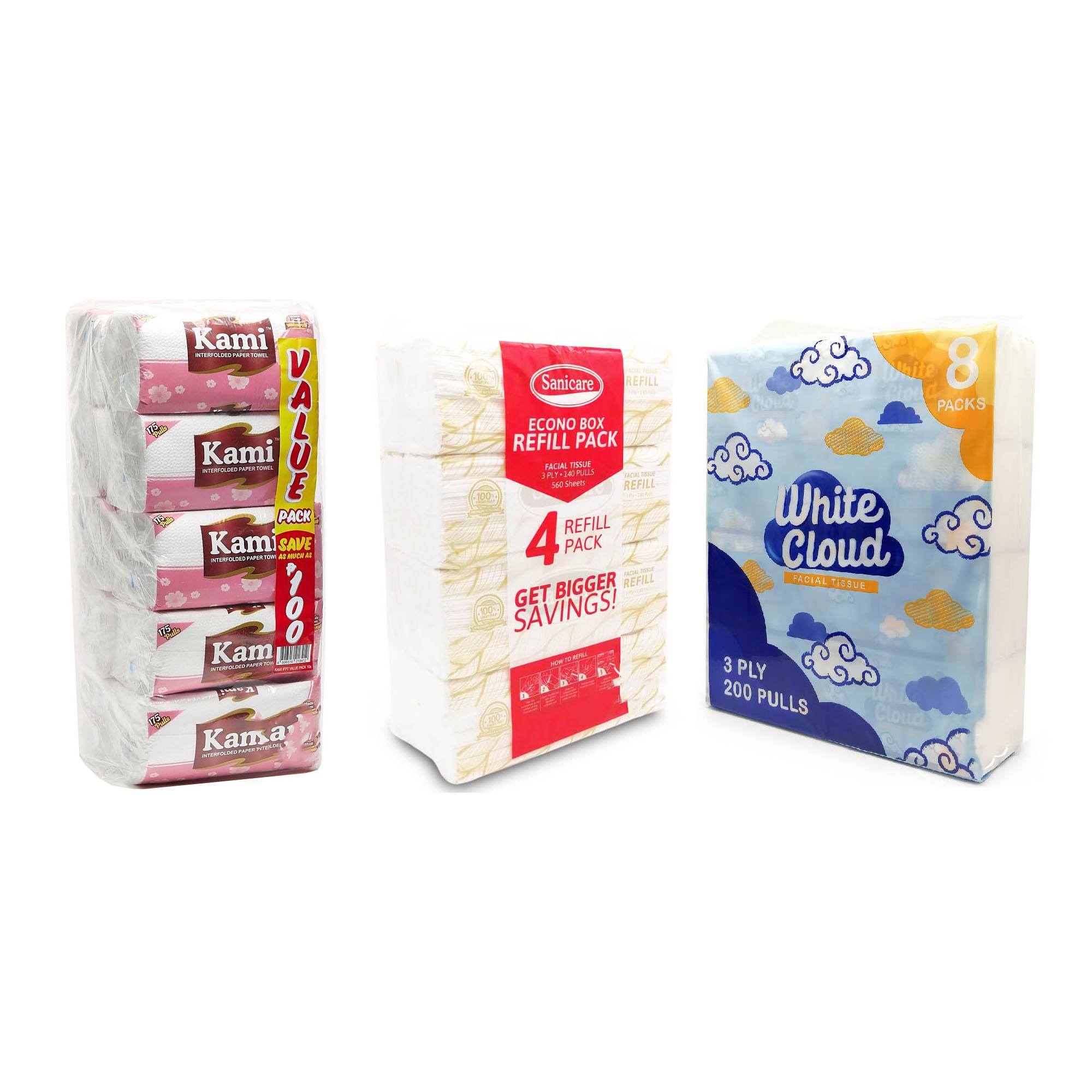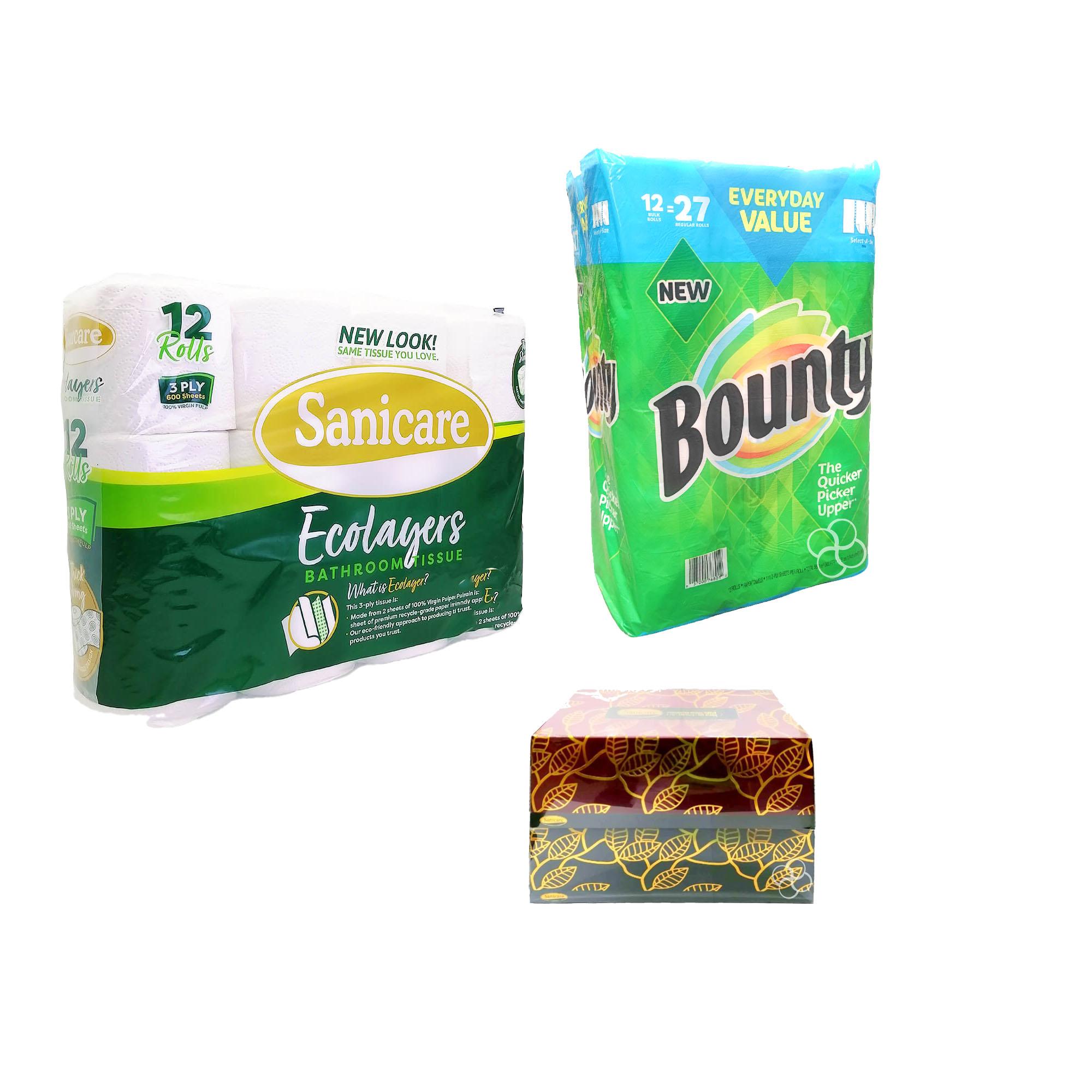 | Specification | Bounty 12rolls, kami 10 x 175s, Sanicare 12rolls, Sanicare Pack 4s, Sanicare Wood2x140s |
